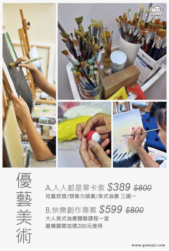 【優藝美術】喚起體內潛藏已久的藝術細胞!兒童捏塑、想像力插畫、美式油畫、大人美式油畫體驗等豐富課程選擇,一堂只要389元起!藉由創作感受藝術帶來的喜悅!
